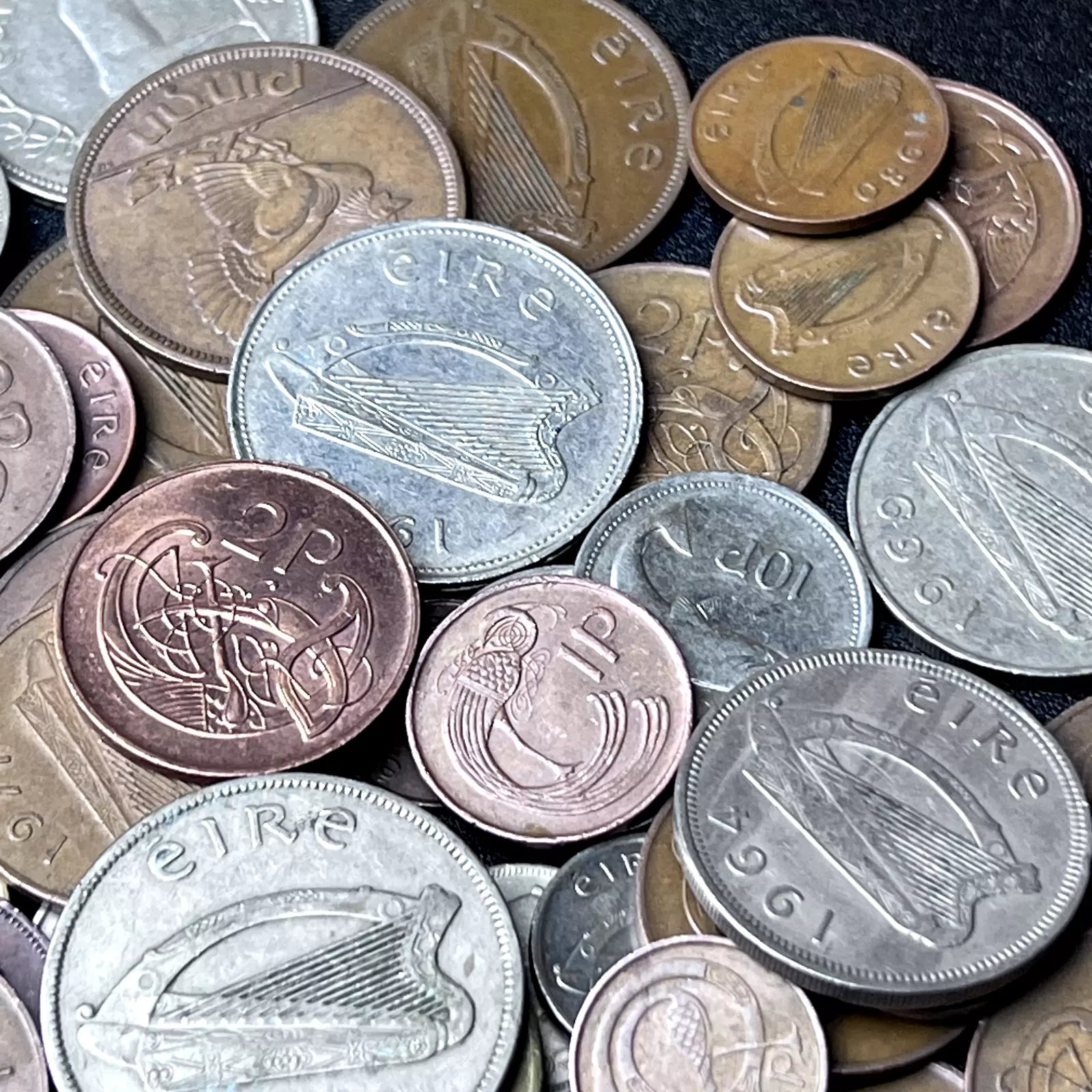 A fun bulk mix of Irish coins – different years, sizes, and denominations. All genuine coins from Ireland, collected over time from various sources. You might find pre-euro punts, modern euro coins, and a variety of classic designs featuring harps, animals, and Celtic symbols. Perfect for collectors, resellers, or anyone who just enjoys world coins. Coins are circulated and will show normal wear.