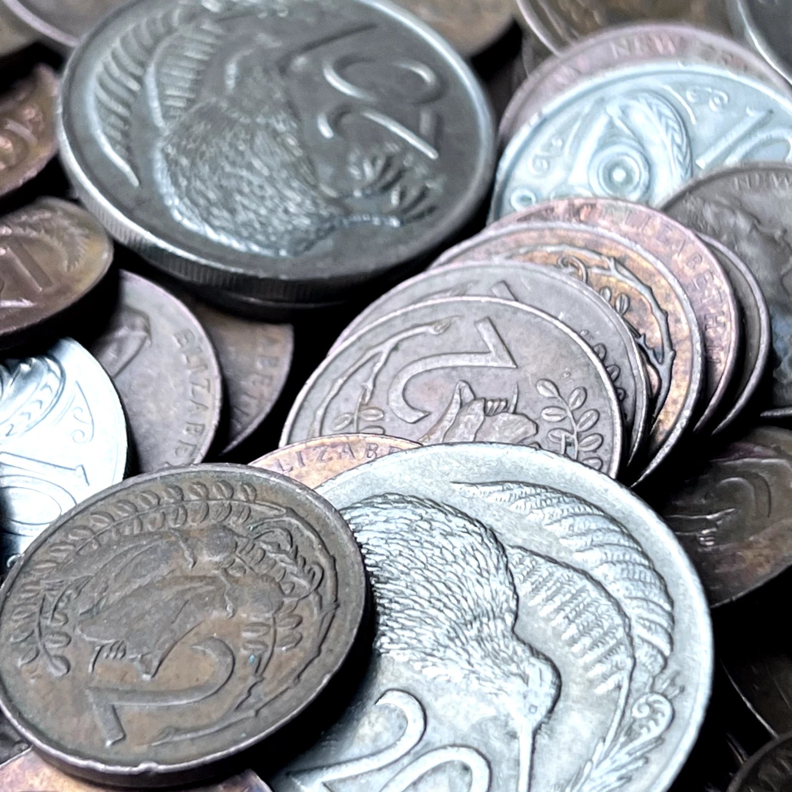 A fun bulk mix of New Zealand coins – different years, sizes, and denominations. All genuine coins from New Zealand, collected over time from various sources. You might find older pre-decimal coins, modern dollars and cents, and a variety of designs featuring native wildlife, Maori motifs, and British royalty. Perfect for collectors, resellers, or anyone who just enjoys world coins. Coins are circulated and will show normal wear.