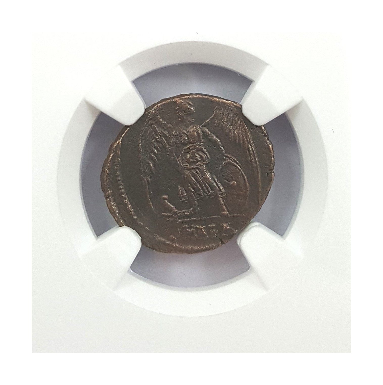 Coins like this one were part of a broader effort to celebrate and legitimize the new capital, blending traditional Roman imagery with the empire’s slow shift toward Christianity. The reverse, often displayed on the front of certified holders, captures this critical moment of cultural and religious transformation.