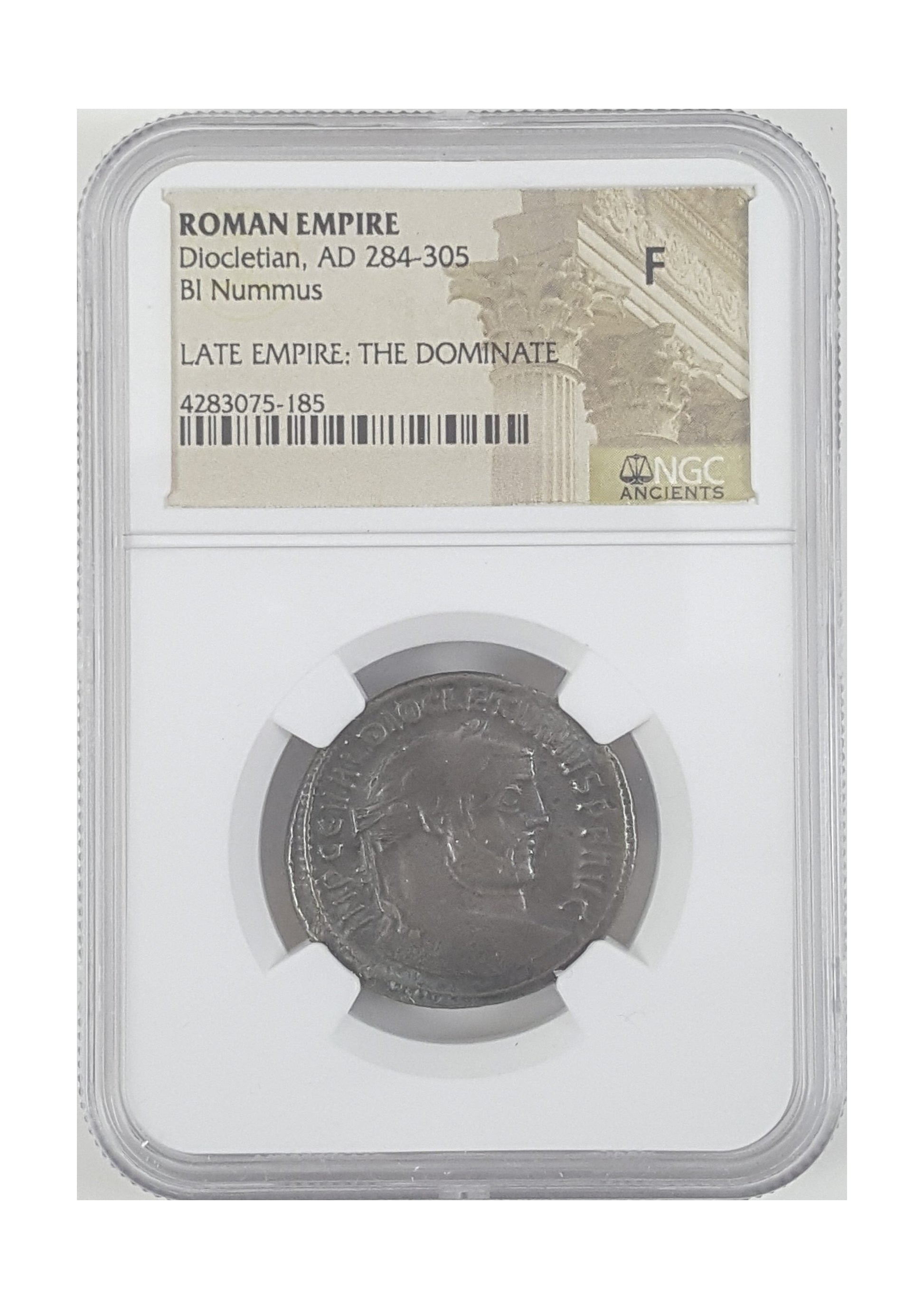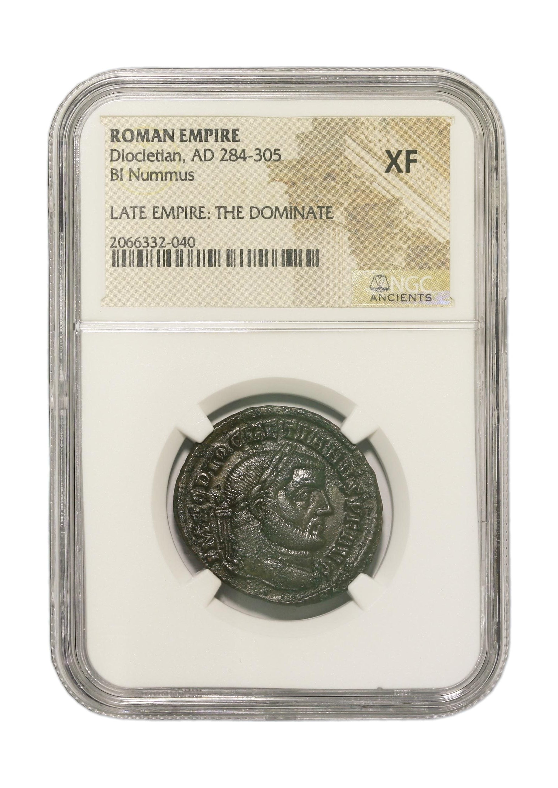 Own a certified Roman bronze AE of Diocletian (AD 284–305), authenticated and slabbed by NGC. This coin marks the reign of one of the most transformative rulers in Roman history — the emperor who ended the Crisis of the Third Century and rebuilt imperial authority.