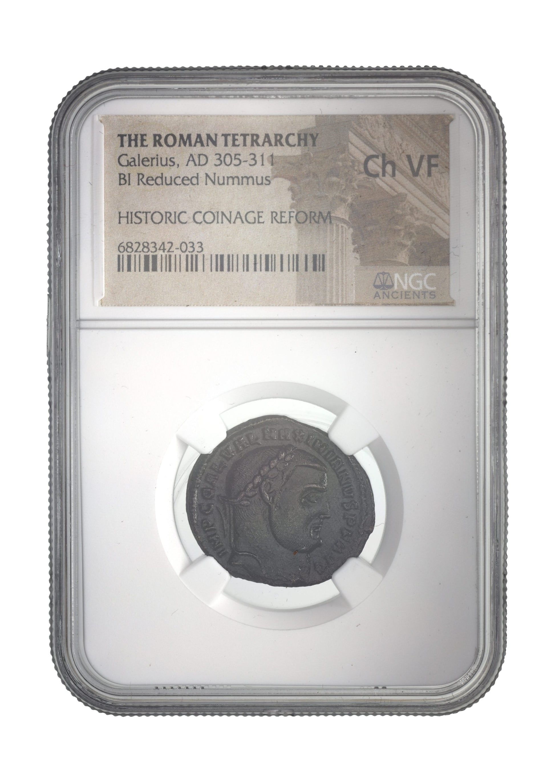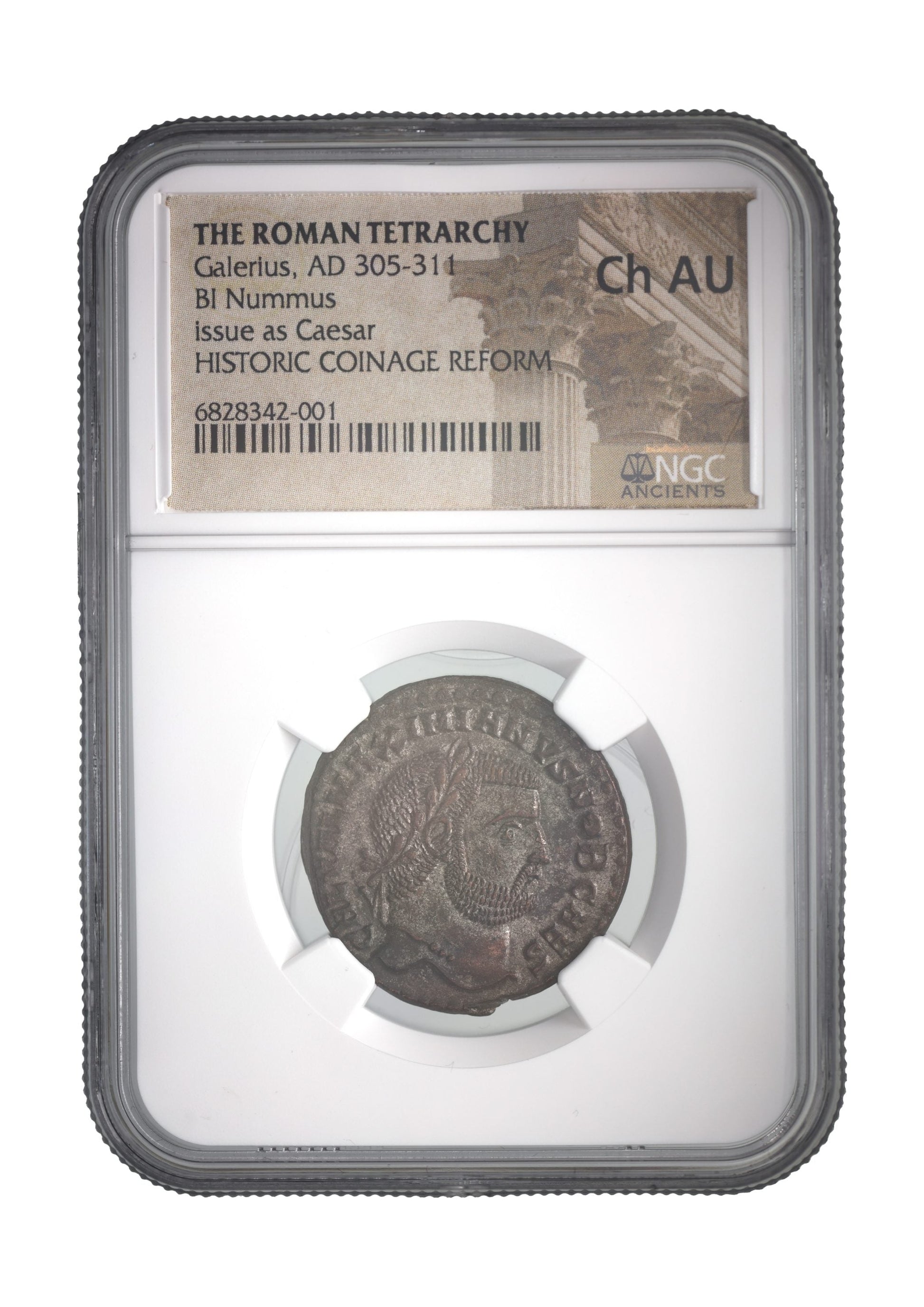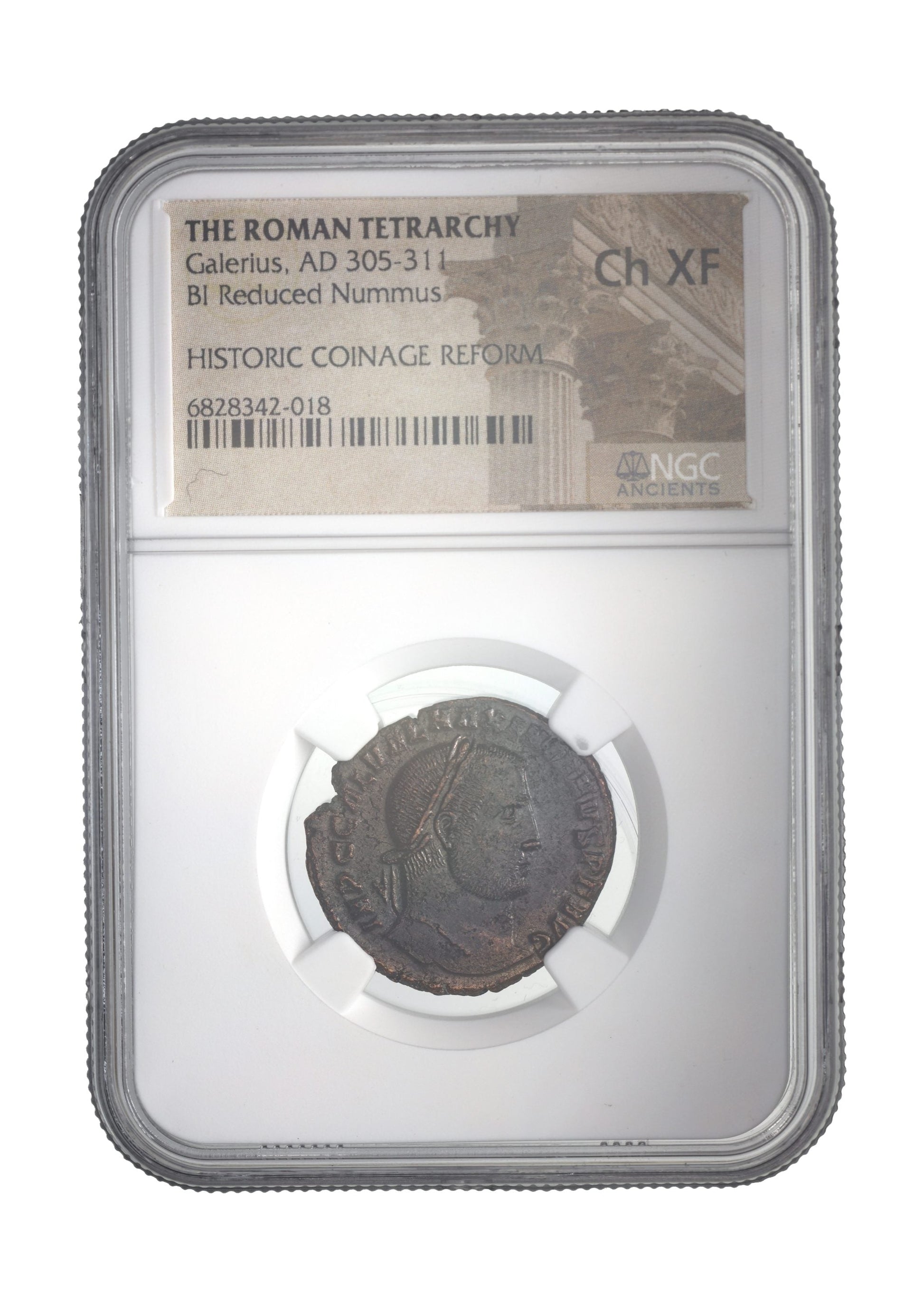 Own a certified Roman bronze AE of Galerius (AD 293–311), authenticated and slabbed by NGC. This coin connects to the era of the Tetrarchy — Rome’s bold but short-lived experiment to restore order through shared imperial rule.