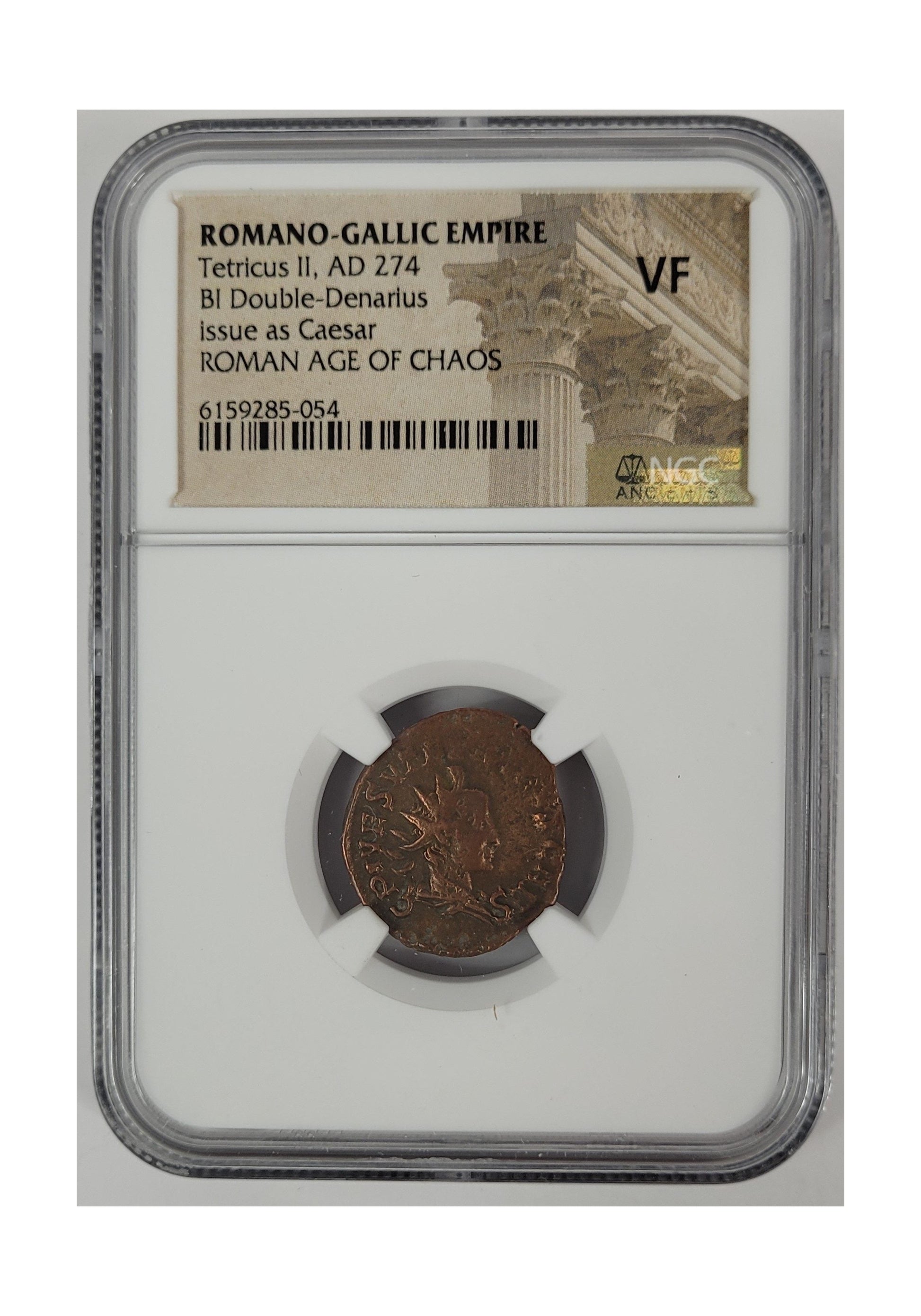 Add a fascinating piece of Roman history to your collection with this AE coin of Tetricus II (AD 273–274), certified and slabbed by NGC. Tetricus II served as Caesar of the short-lived Gallic Empire, a breakaway state that controlled parts of Gaul, Britain, and Hispania during the turbulent Crisis of the Third Century.