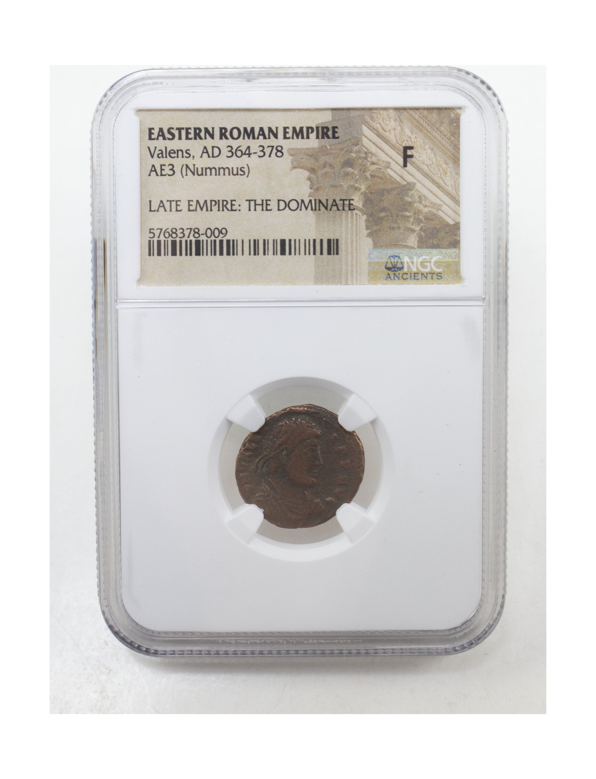 Own a certified Roman bronze AE of Valens (AD 364–378), authenticated and slabbed by NGC. This coin connects to the reign of an emperor who is often remembered as "the Last True Roman," embodying the endurance and resilience of the ancient empire.