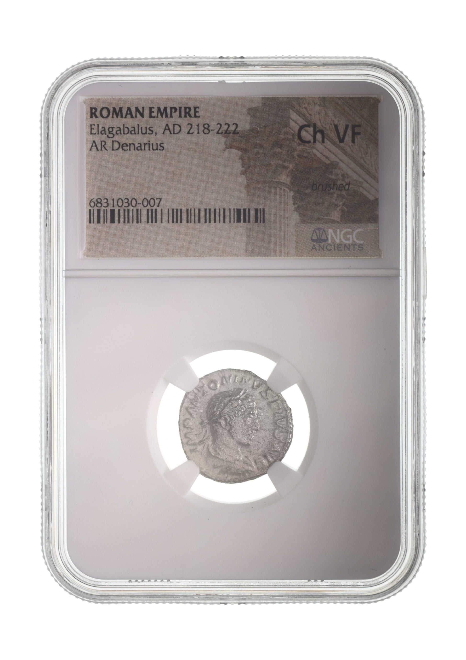 Own a certified Roman Silver Denarius of Elagabalus (AD 218–222), authenticated and slabbed by NGC. This coin offers a vivid connection to one of the most controversial and infamous figures in Roman imperial history.